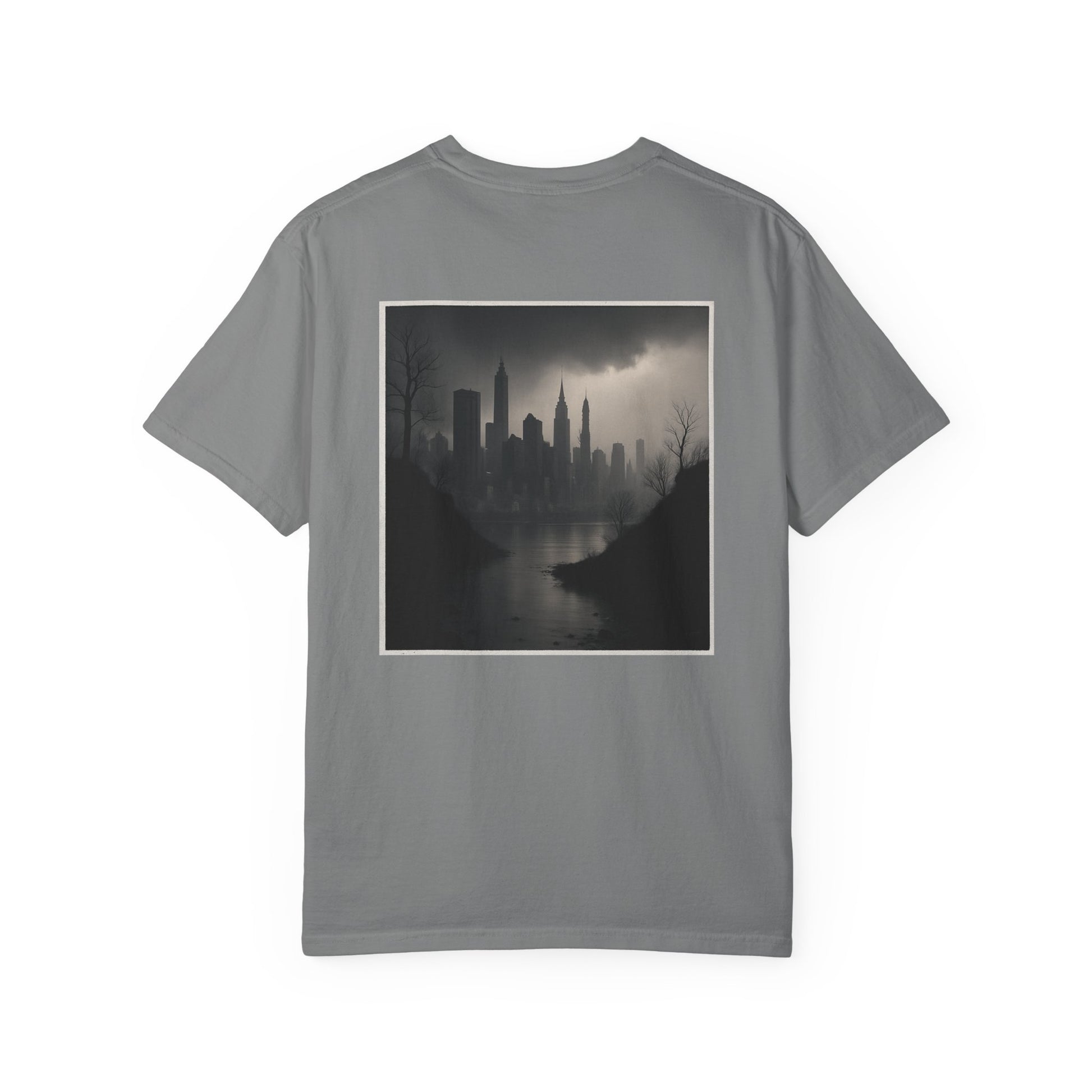 A comfortable and stylish urban skyline graphic tee, perfect for those who enjoy cityscapes and urban vibes. This unisex garment-dyed t-shirt is ideal for casual wear and can be easily accessorized for a semi-formal look. Suitable for adults, it is available in multiple sizes and 58 colors to match any style. Great for city lovers, travelers, and those who appreciate unique graphic designs. Perfect for gifting on birthdays, holidays, and special occasions.